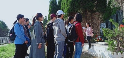 清明节清晨8点,所有参与人员在北校西雕集合完毕,我们怀着对周尧前辈无限崇敬的心情整装待发。8点15分,在文宣部成员的组织和带领下,我们有条不紊地按照3列10行的形式从北门出去前往福泽园。9点20分左右到达福泽园,与其工作人员对接,由其带领我们前往周尧先生的墓碑,其后我们便开展了我们的祭祀活动。