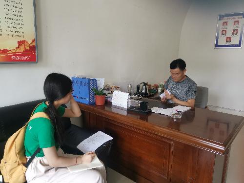 小组首先到达荆家河村,队员们特地拜访了荆家河村的村主任,并完成村干部问卷。组员向其询问了该村的科普服务现状。经过了解队员们发现,本村有规模化种植药材,村委会定期会请一些种植药材方面的专家向当地村民进行培训,以帮助他们更好地种植药材。另外,本村开展科技文化卫生三下乡活动,进行技术培训,助力该村农业发展。