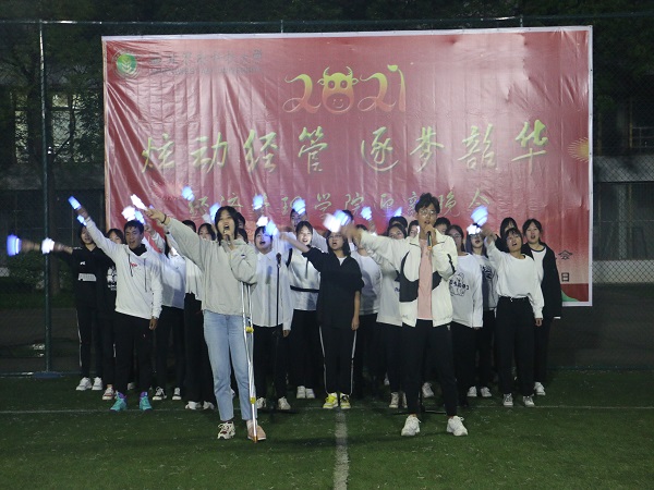此次晚会节目表演精彩纷呈,高潮迭起,节目中穿插“抢凳子”等游戏互动环节,场上欢笑声不断。学院领导和老师热情参与抽奖环节,为在场的新生送去一份幸运,更是送去了一份大学的温馨。小足球场上应援棒和灯牌不断闪烁,经管学子的青春风采肆意绽放。在初秋的这一晚演绎喜悦舞动青春,敞开心扉感受快乐,共同庆祝四百多位经管学子从祖国的五湖四海而来,有缘共同汇聚于此,彼此陪伴走过人生的一段旅程。
