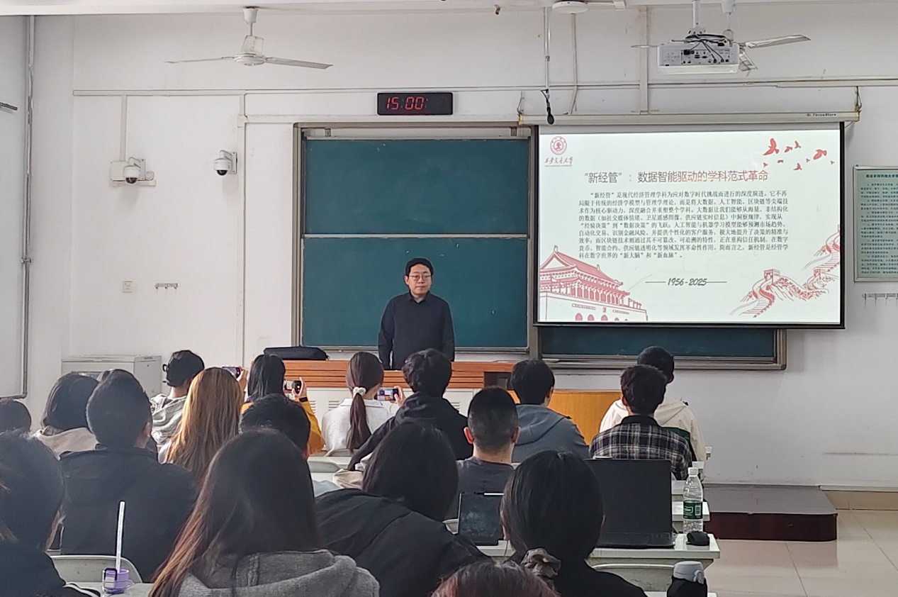 活动第二环节中,西农龙珠直播足球辅导员郭昊晨老师进行发言,两校同学认真聆听积极思考。他指出,农业现代化离不开金融活水与经管智慧的滋养,“新农科”的发展需“新经管”的赋能;同时他对两校共建活动表示肯定,寄语学子“勇于创新、勤于实践”。
