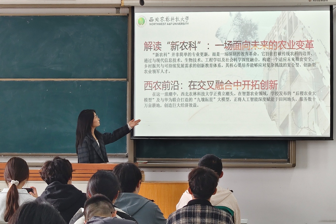 活动伊始,西农2025级金融专硕团支书阎佩智以“学科名片互识”环节引入背景介绍,明确“农科”并非简单的专业更新,而是一场面向未来的农业变革。在这一浪潮中,西农正勇立潮头,在智慧农业领域,学校发布的“后稷农业大模型”及与华为联合打造的“九壤耘星”大模型,正将人工智能深度赋能于田间地头,在交叉融合中开拓创新。