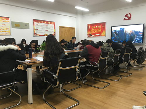 11月14日晚,工商党支部在C205会议室召开专题学习会,就党的十九大审议通过的《中国共产党章程(修正案)》及纪录片《第五空间》进行了深入学习。支部书记丁坤主持会议,支部全体成员参会。