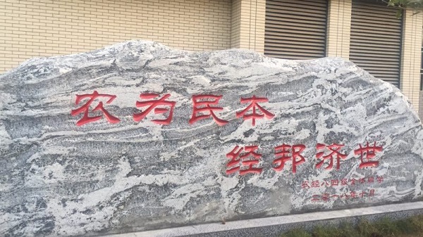 据悉,为了表达对母校的感激之情,校友们集资为母校捐赠一块纪念石,石头上刻了八个大字“农为民本,经邦济世”。目前这块石头立在龙珠直播足球办公楼前。